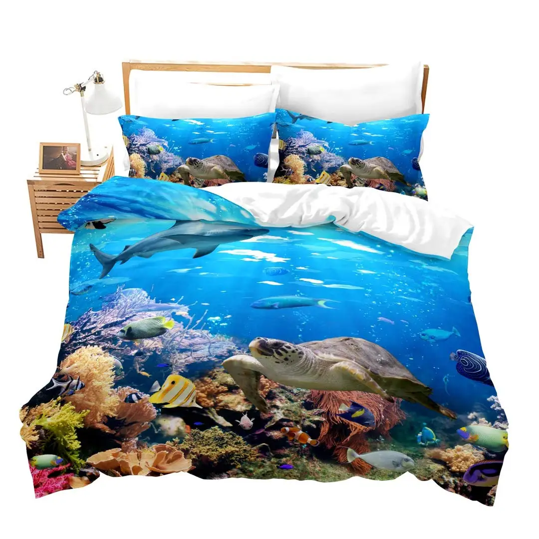Sea Turtle Duvet Cover Underwater World Themed Marine Life Bedding Set for Women Teen Boys and Girls Gift for Bedroom Decoration